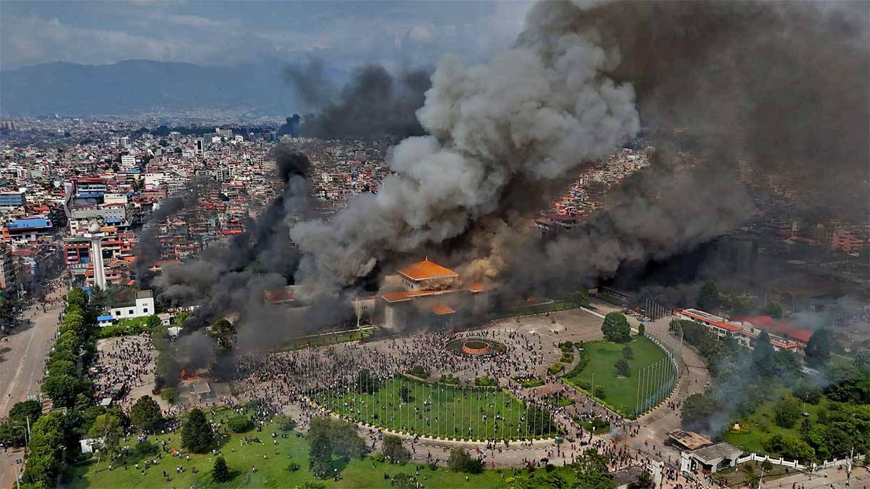 जेनजीका प्रदर्शनकारीद्वारा सञ्चारमन्त्री गुरुङको निवासमा ढुंगामुढा र आगजनी