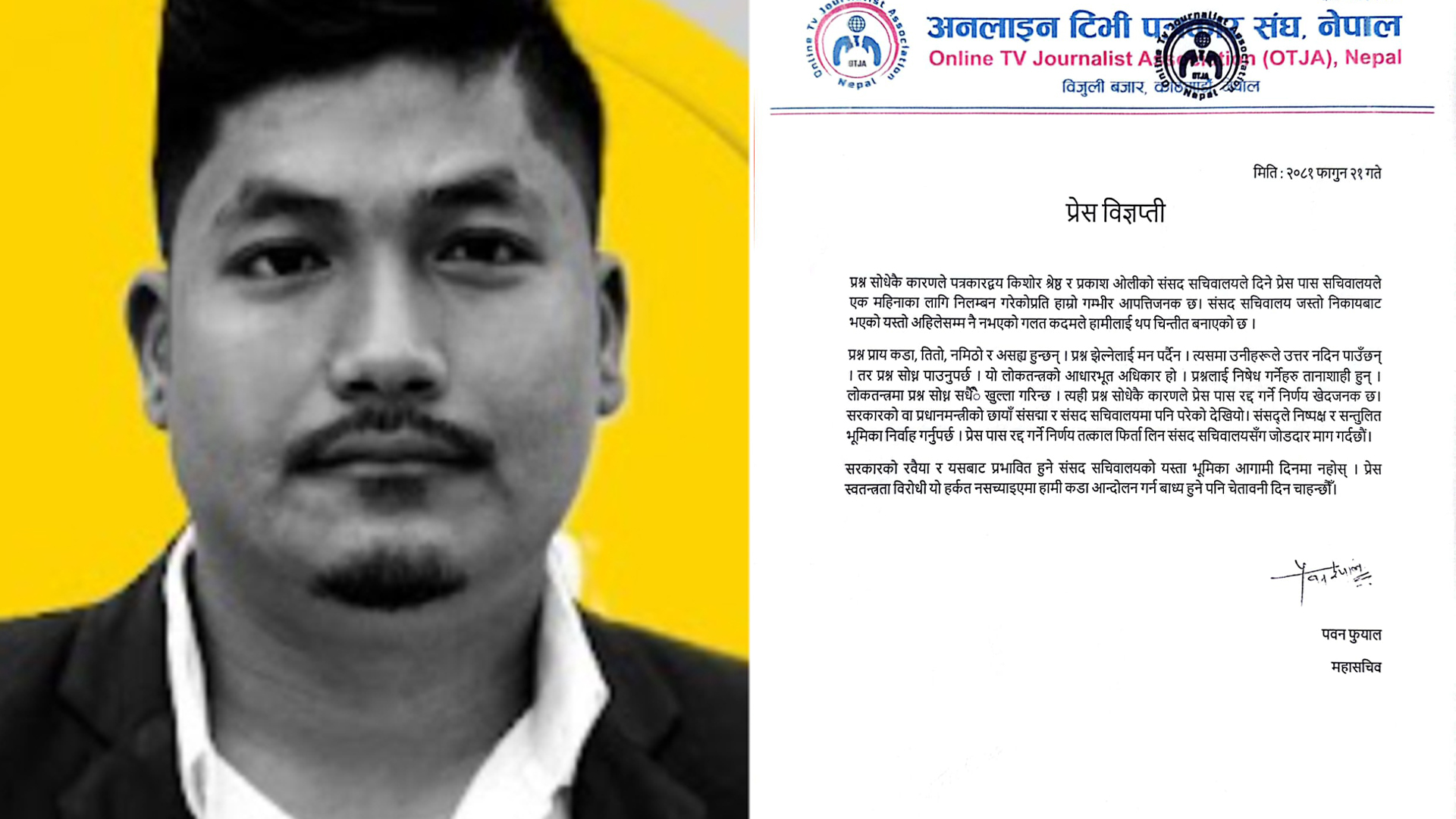 अनलाइन टिभी पत्रकार संघद्वारा पत्रकारको प्रेस पास निलम्बनप्रति आपत्ति
