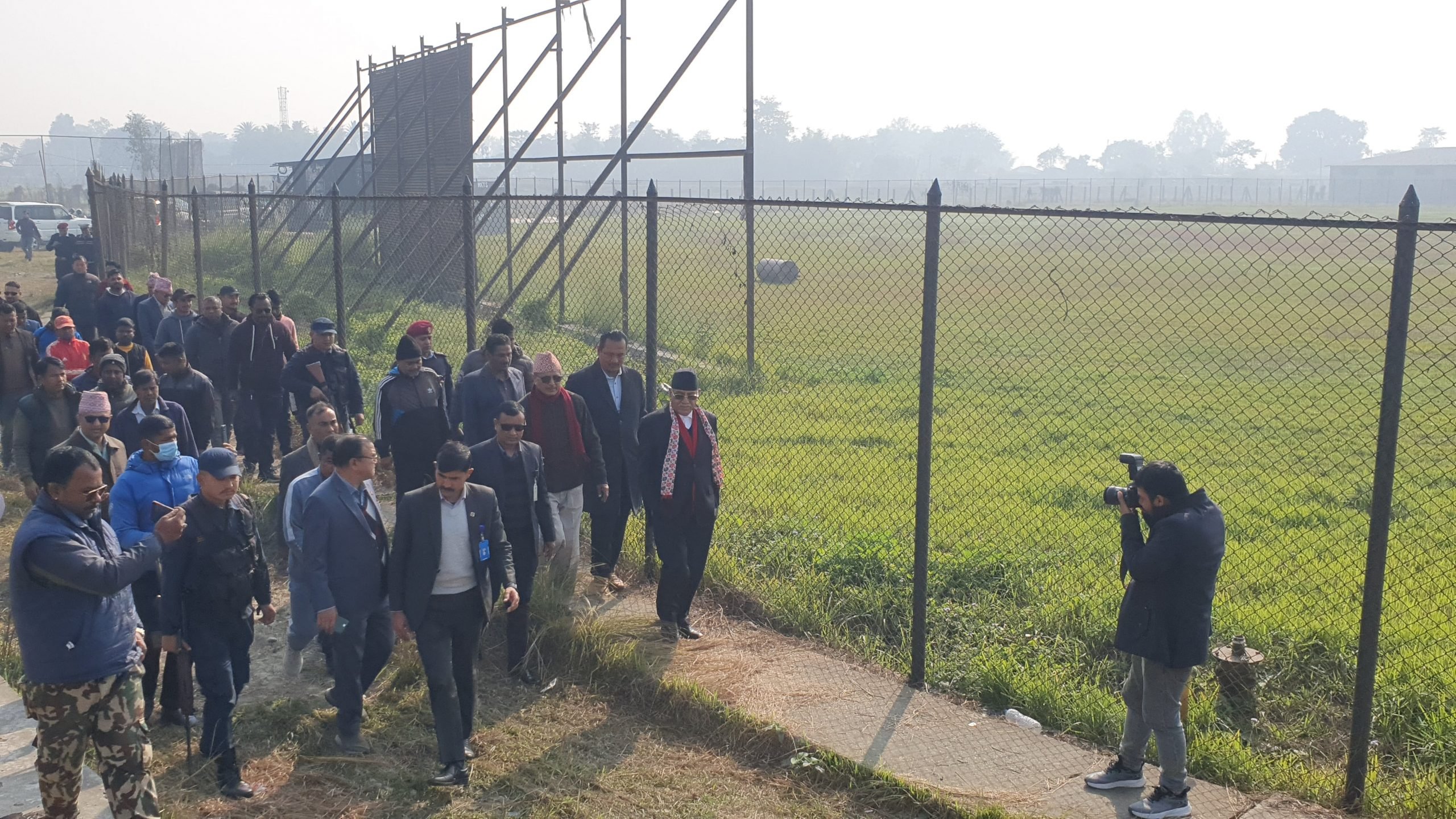 क्रिकेट मैदानमा ताला नखुल्दा माओवादी अध्यक्ष दाहाल बाहिरबाटै फर्किए