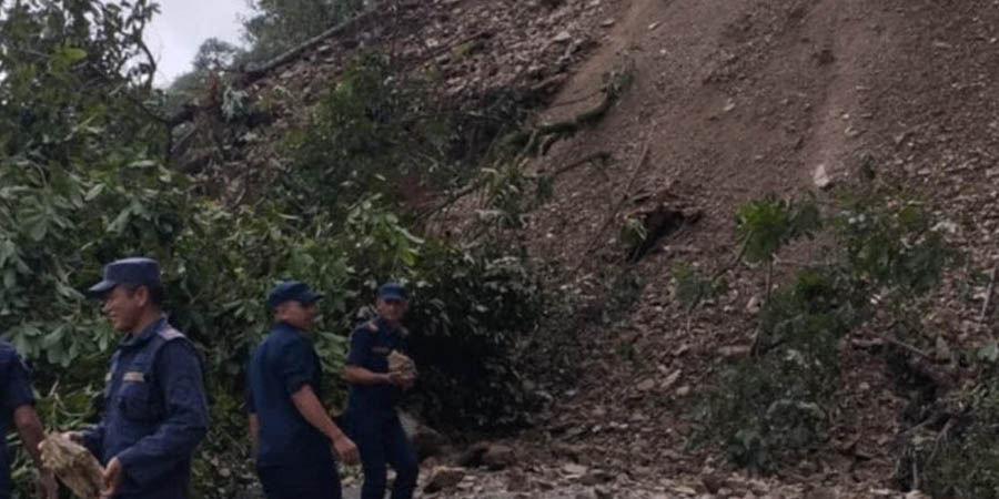 पहिरोले मध्यपहाडी लोकमार्गका लमजुङ खण्ड पूर्णरुपमा अवरुद्ध, यात्रु अलपत्र
